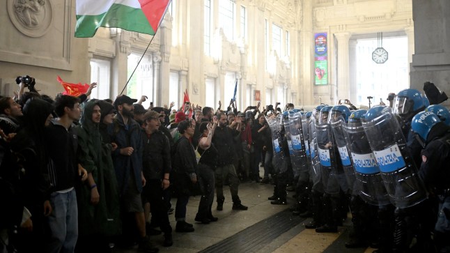 Outside of Bologna,protesters tried to stop traffic on a motorway as part of the demonstration.