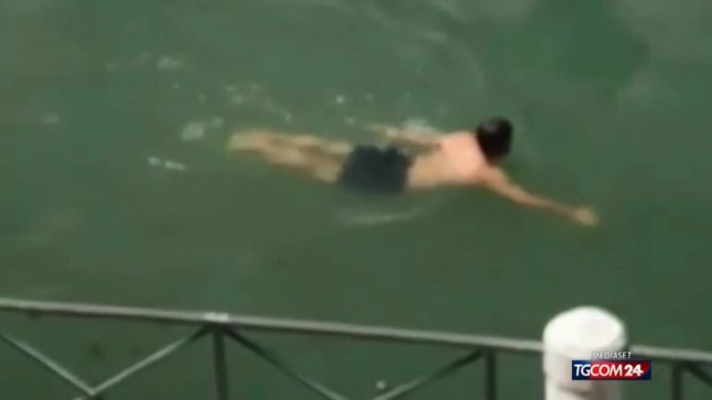 A couple have been asked to leave Venice for taking a dip in one of the city’s canals (Picture: tgcom24)